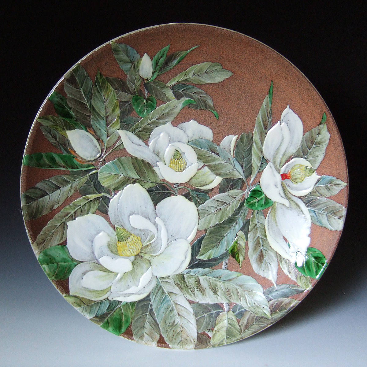 作品名:釉描彩泰山木図大飾皿