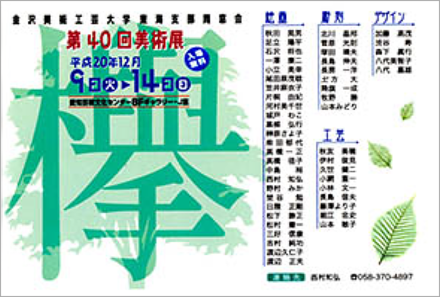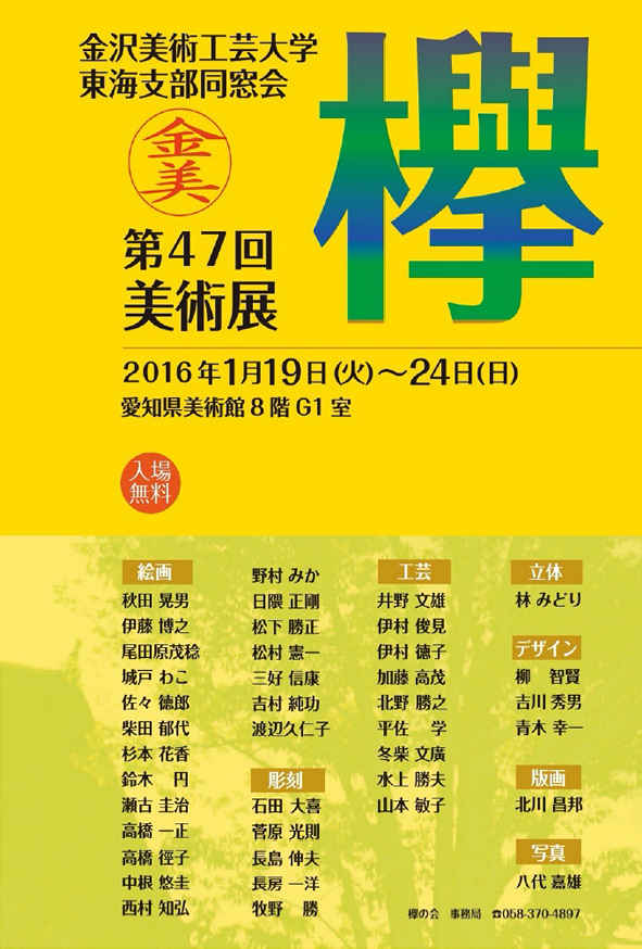 2016年1月19日(火)~24日(日) これまでも美術、デザイン問わず様々なジャンルの卒業生が出品する多様な内容でした。これからもさらに多くの東海地区の卒業生に声がけし広げていきたいと考えています。 |