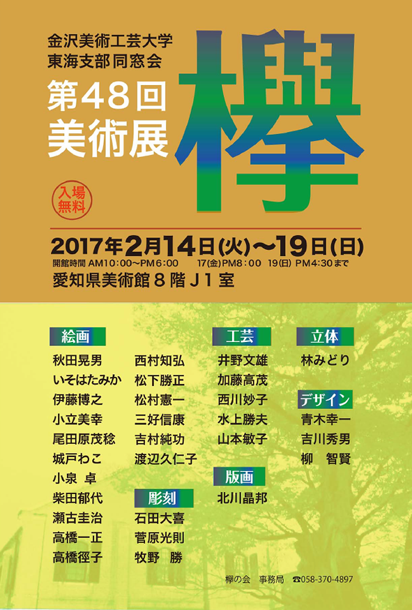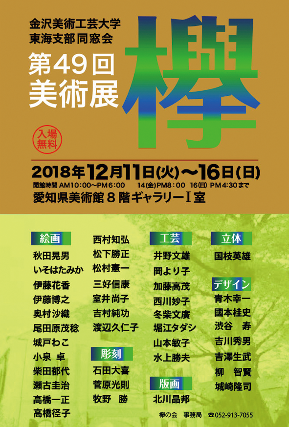 2019年12月11日(火)~16日(日) 金沢美術工芸大学の卒業生で、この東海地区に在住の同窓生の展覧会が開催されました。アート系・デザイン系ですが、社会人となり皆独自の作品で頑張っています。会場も新しくなりました。 |