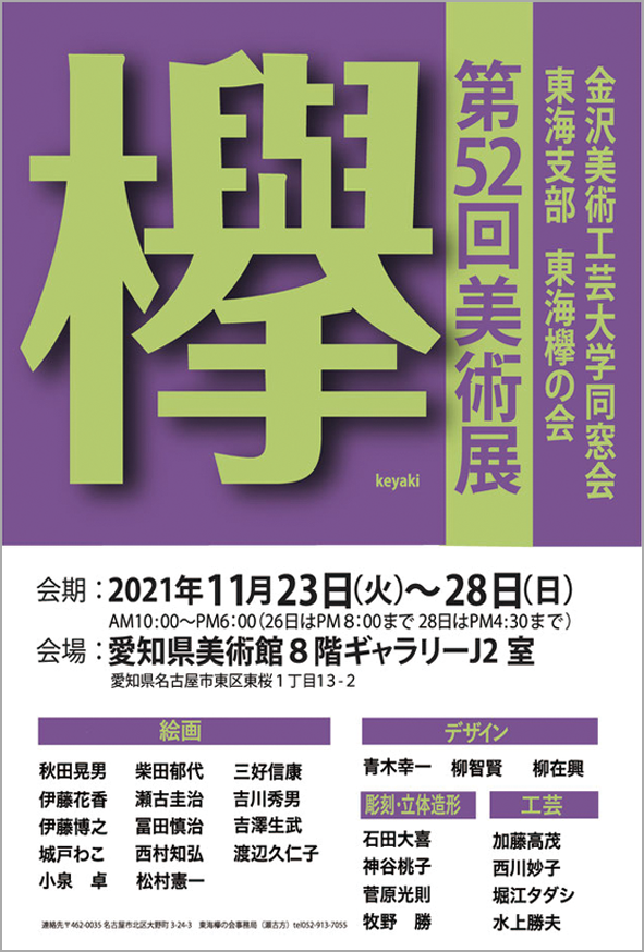 2021年11月23日(火)~28日(日) 展示内容は絵画・デザイン、工芸、彫刻、立体造形です。今のような時だからこそ作品を見ていただく皆さんが元気になるような展覧会を目指していきます。 |