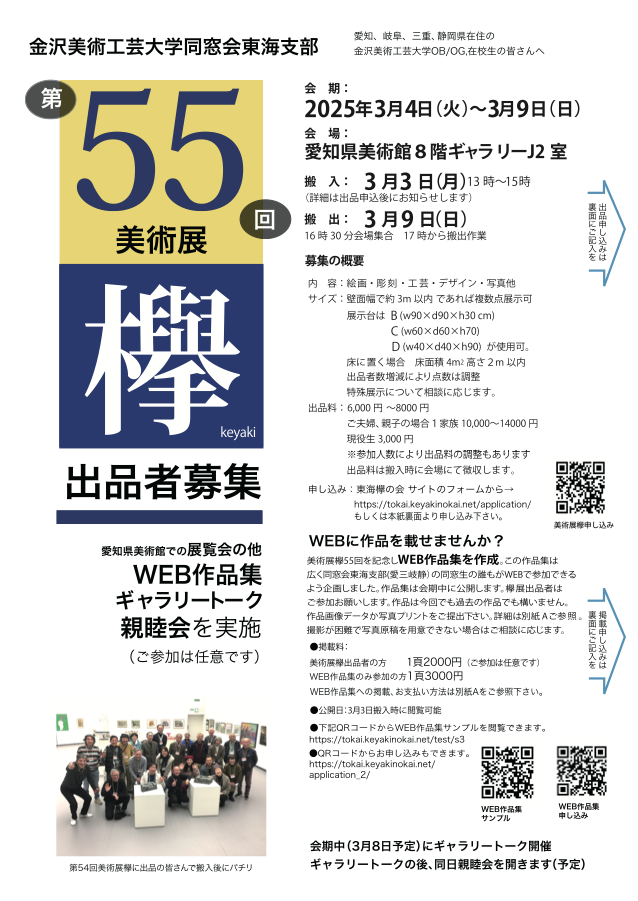 会期は2025年3月4日~3月9日まで(搬入3日・搬出3月9日) 会場は愛知県美術館8階ギャラリーJ2室(前回と同室)です。